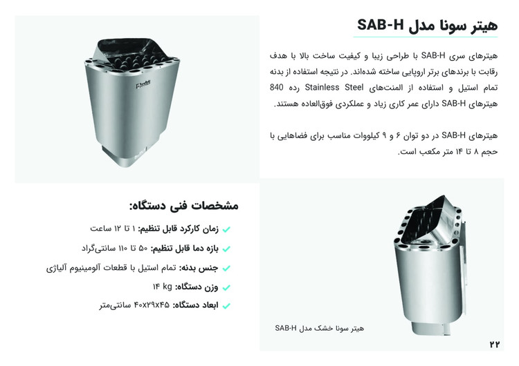 شرکت دیوییست (Diooist) که در بازار استخر و سونا تحت عنوان Dioo نیز شناخته میشود، یکی از برترین تولیدکنندگان هیتر برقی سونا خشک در چین است. بازار هدف محصولات این شرکت امریکای شمالی و اروپا بوده و همین موضوع نشان دهنده کیفیت بالای محصولات این شرکت است. هیتر برقی سونا خشک دیوییست سری SAB-H با طراحی زیبا و کیفیت ساخت بالا، با هدف رقابت با برترین برندهای اروپایی ساخته شده است. این هیتر برقی در نتیجه داشتن بدنهای تمام استیل و المنتهای استنلس استیل 840، از عملکرد فوق العاده و عمر کاری بالایی برخوردار است. هیتر سونا خشک دیوییست SAB-H با توان6کیلو وات، گزینهای ایدهآل برای استفاده در اتاقهای سونا خشک با حداکثر فضای8 تا 13 متر مکعب است.