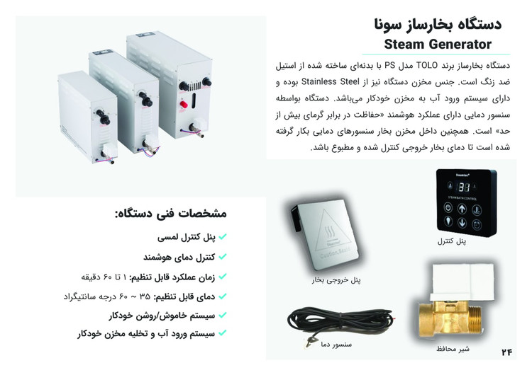 ویژگیهای دستگاه بخارساز سونا تولو سری PS مدل TOLO-120
